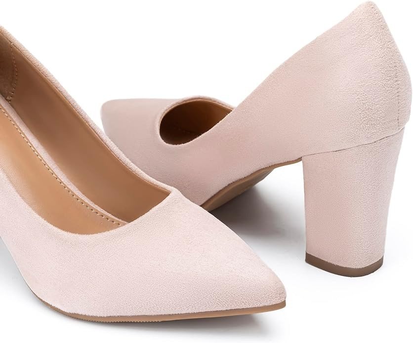 - Wardrobe Essentials: Elevate your style effortlessly with the classic nude heels, perfect for matching suits, dresses, skirts, and jeans. Versatile and stylish, these nude chunky heels are a must-have in every woman’s wardrobe, solving the problem of finding the right pair of shoes for any occasion.