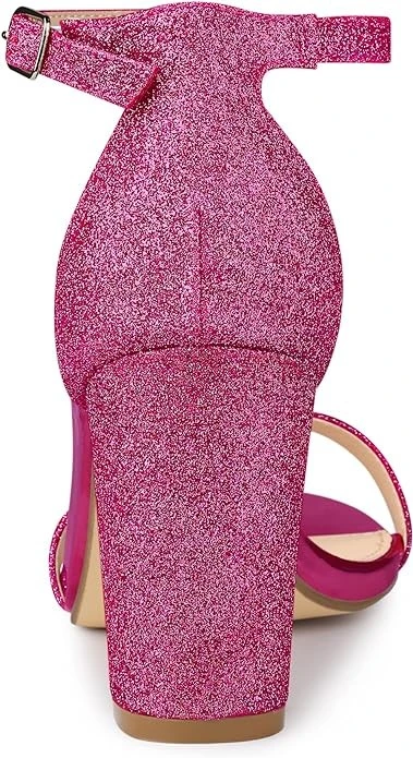 2. Glitter Heels Sandals, Ankle Strap, Open Toe, Block Heel, Buckle Closure